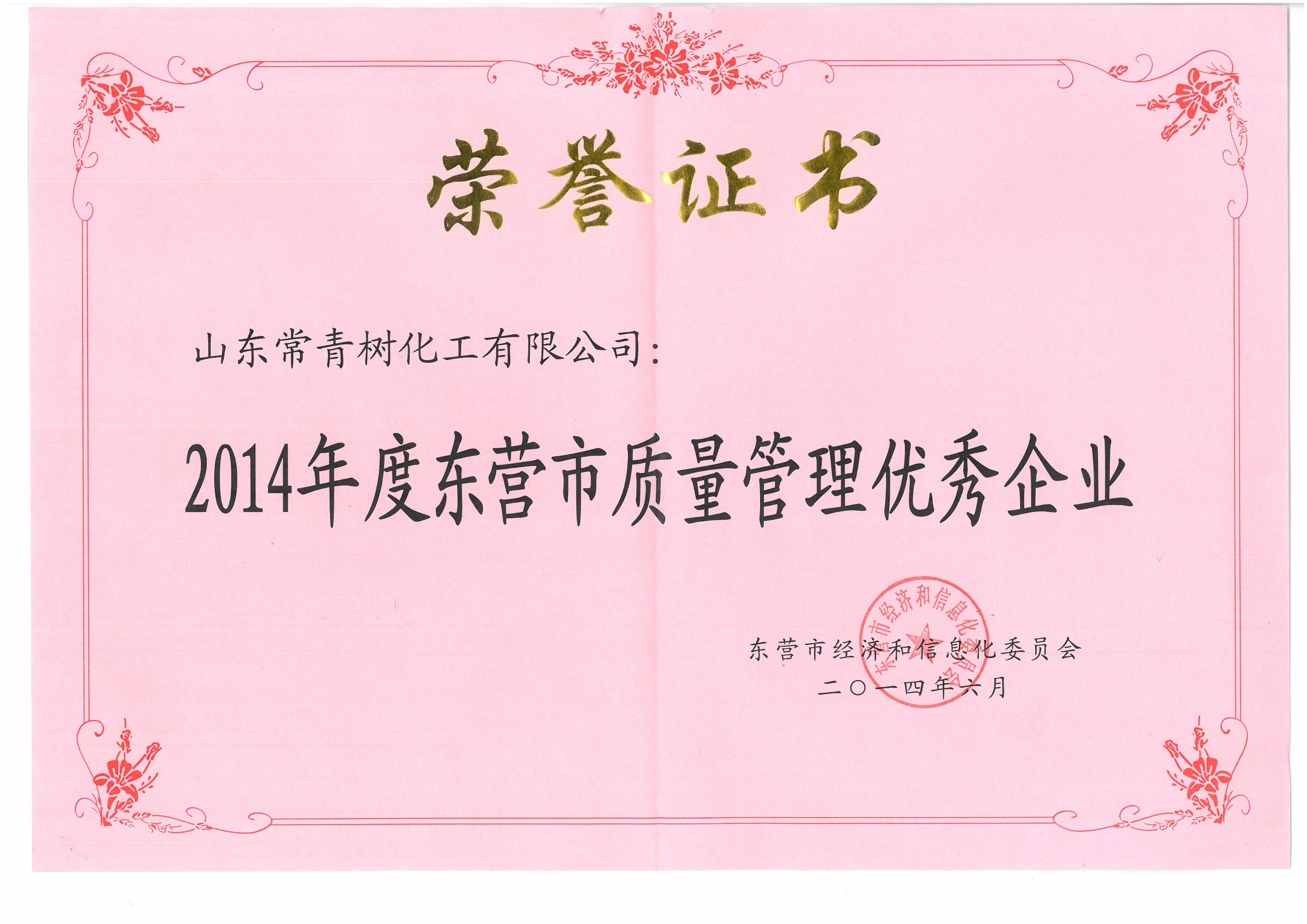 2014年,质量管理优秀企业