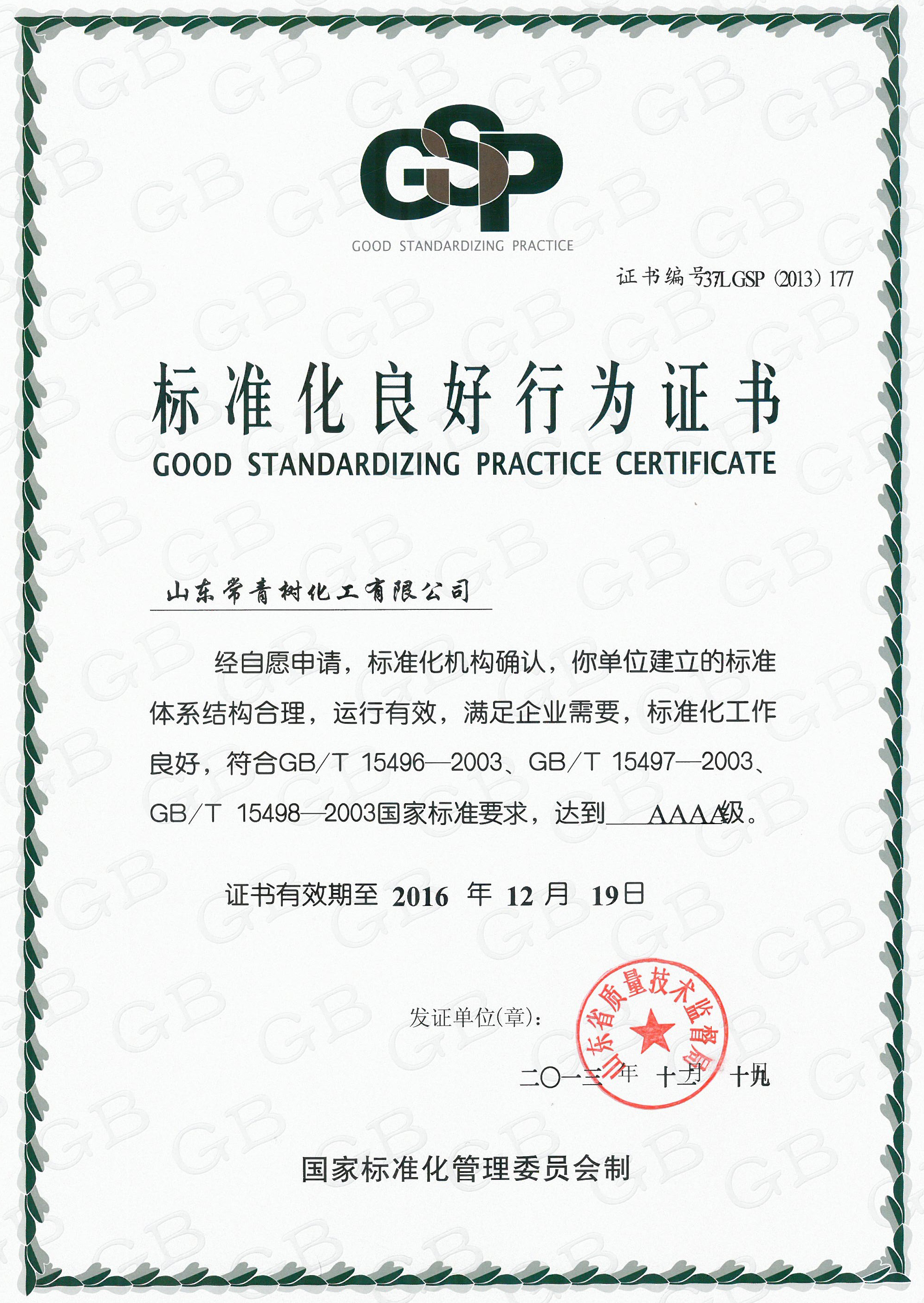 2013年,国家标准化AAAA级良好行为