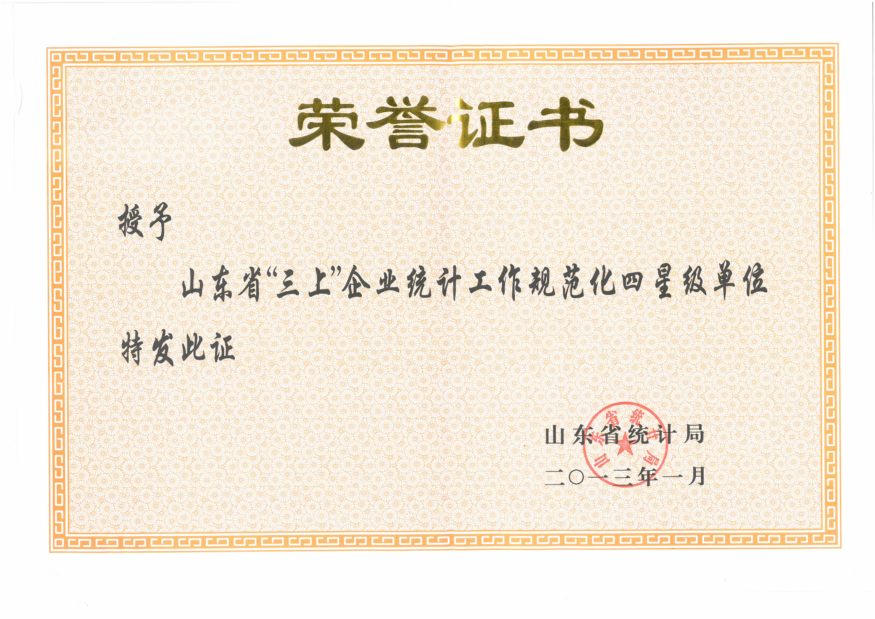 2013年,山东省“三上”企业四星级单位